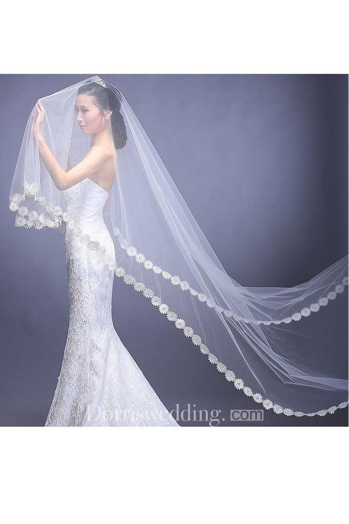 The Simple Style Cathedral Long Wedding Veil with Flower Edge destined to impress, and priced at only $24.19, for a limited time.