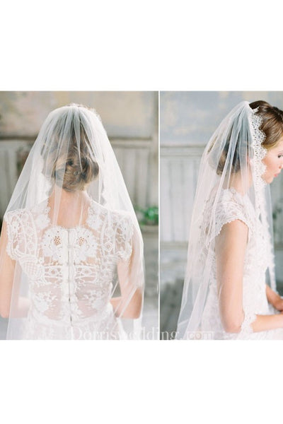 Single Layer Simple Beautiful Bride Wedding Eyelash Lace Veil