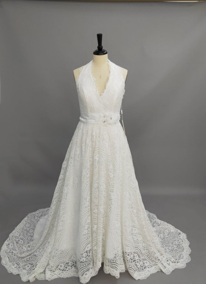 The Sleeveless A-Line Lace Dress With Halter and Open Back destined to impress, and priced at only $198.49, for a limited time.