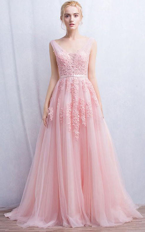 Every product is unique, just like you. If you're looking for a product that fits the mold of your life, the Sleeveless V-neck Long Appliques Tulle Dress-331209 is for you.