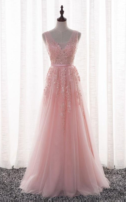 Life is too short to live without the Sleeveless V-neck Long Beaded Tulle Dress-331321. Be happy. Be Content. Be Satisfied.
