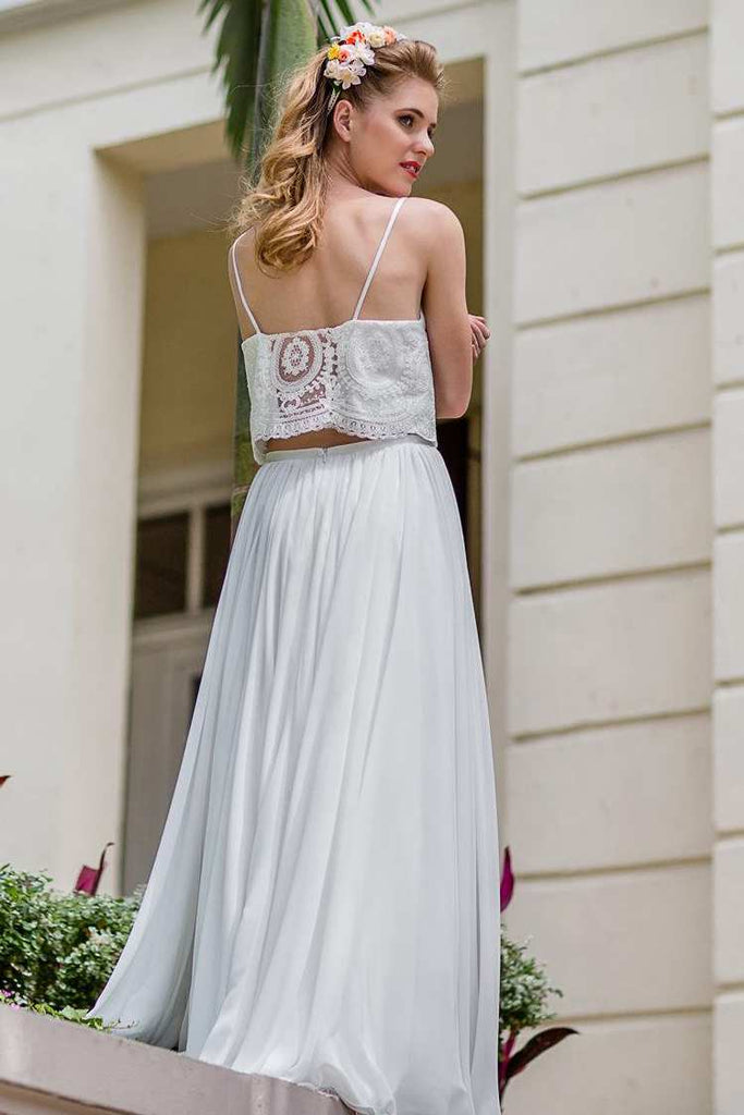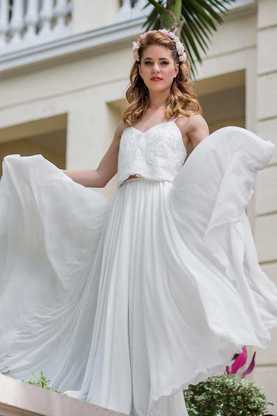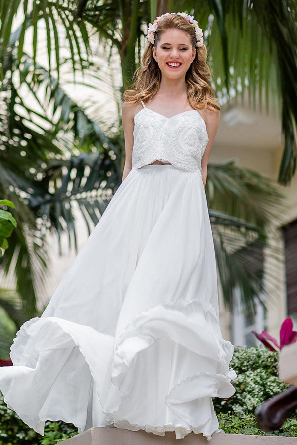 Spaghetti Sleeveless Chiffon Two-Piece Wedding Dress With Lace-715051