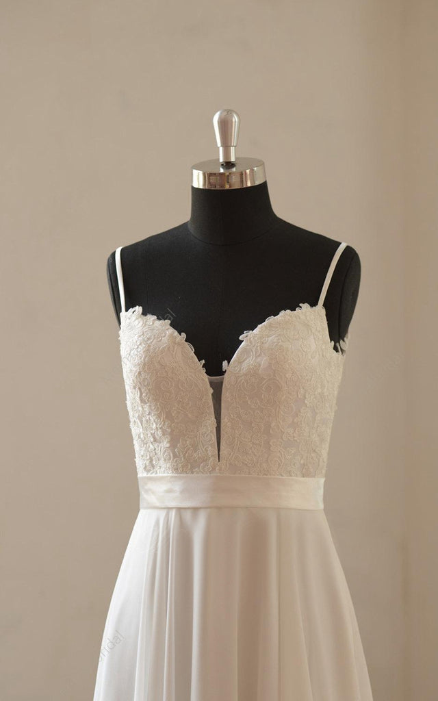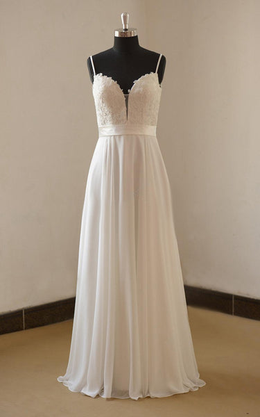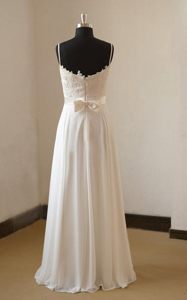 Spaghetti Strapped V-Neck Chiffon Lace Weddig Dress-711423