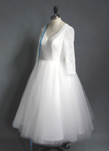 Every product is unique, just like you. If you're looking for a product that fits the mold of your life, the Tea Length High Quality A-line V Neck Lace Top Tulle Wedding Dress-715357 is for you.