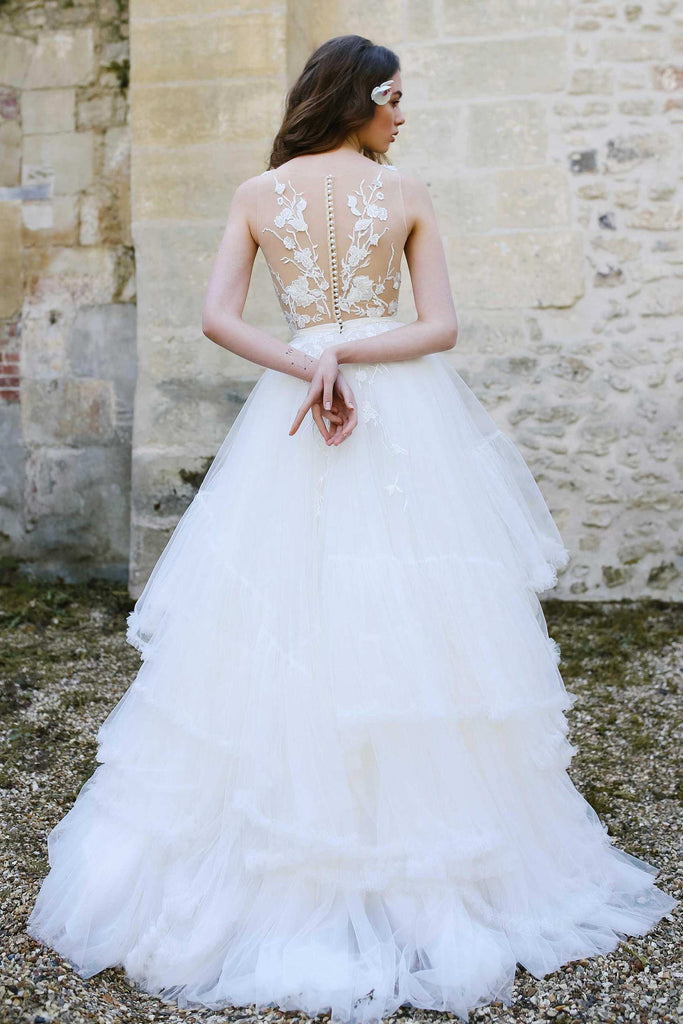 The Tulle A-Line Ball Gown Wedding Dress With Illusion Appliqued Top-715156 is the product you didn't think you need, but once you have it, something you won't want to live without.