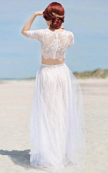 Tulle&Lace&Satin Dress With Button&Zipper-106266