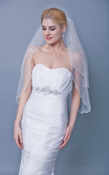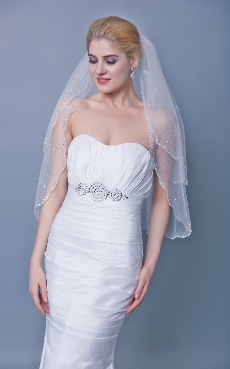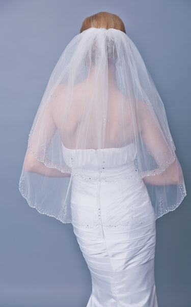 Two Tier Sequined Mid Veil With Beaded Trim-ZP_810068