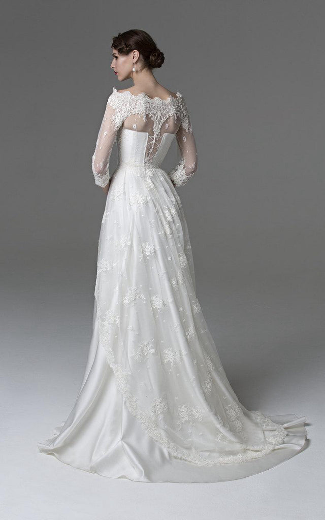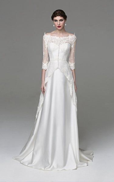 The Unique Lace Overlaying Satin Wedding Dress With Bateau Neck-ET_711353 is far and away, one of our most popular items. People can't seem to get enough of it.