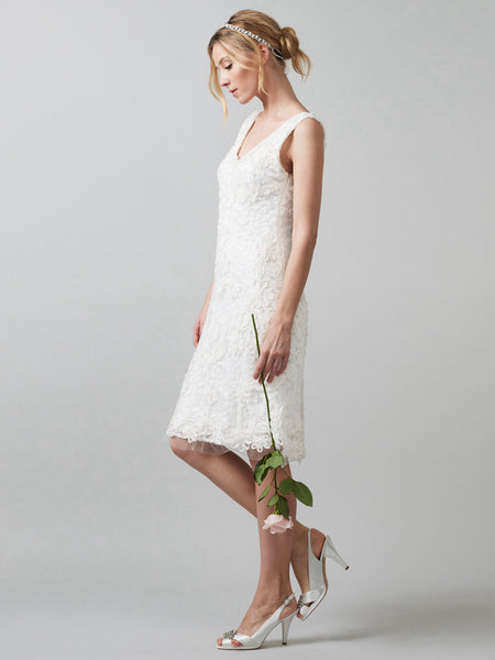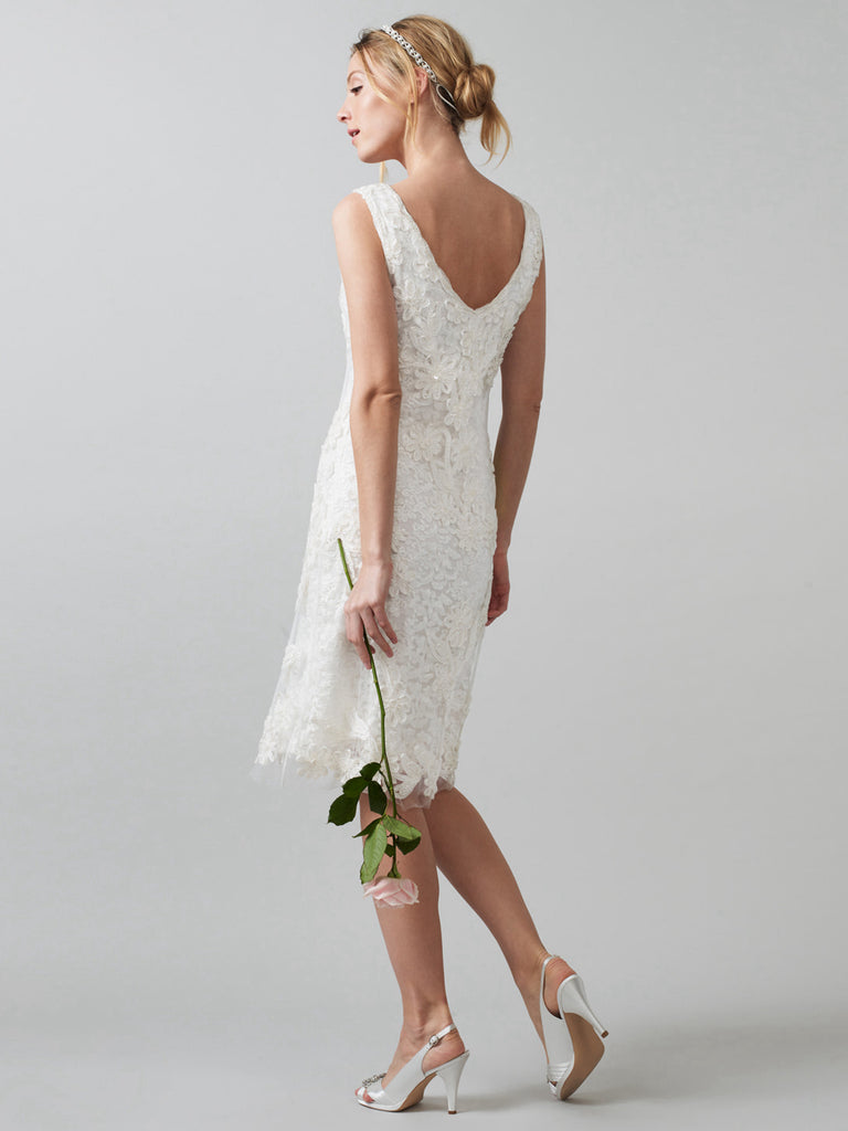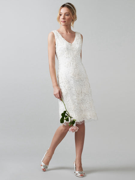 V-neck Knee-length Sleeveless Wedding Dress With Applique-MK_702752