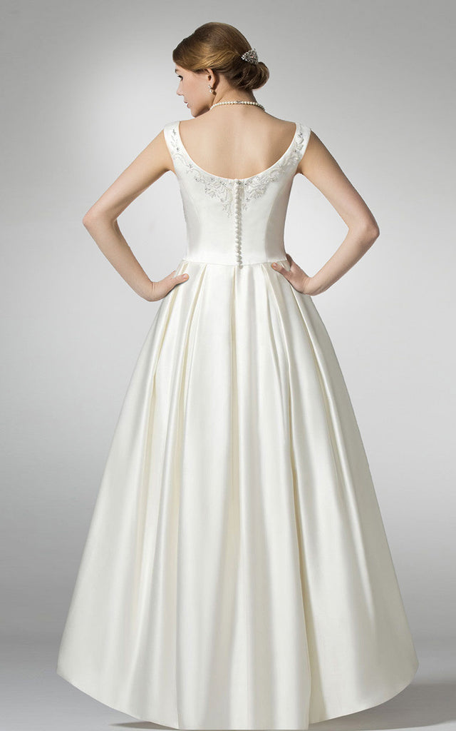 Vintage Sleeveless High Low Satin Wedding Gown With Straps-HT_708809