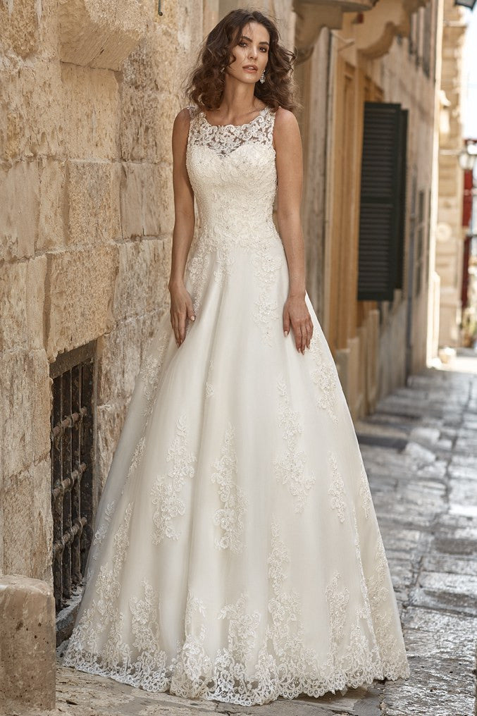 Imagine if you could be satisfied and content with your purchase. That can very much be your reality with the Vintage Modest Boho Lace A-Line Wedding Dress Princess Floral Courthouse Scoop-Neck Sleeveless Bridal Gown with Sweep Train.