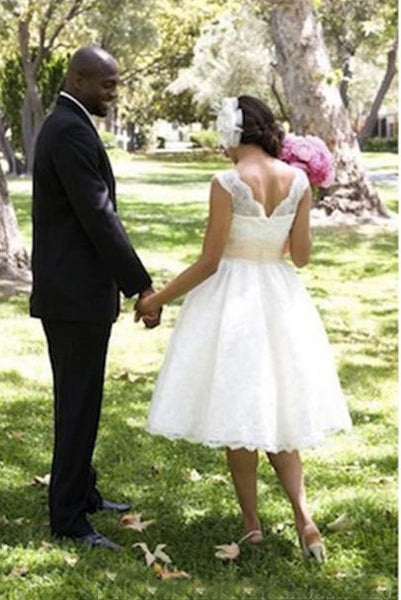 Every product is unique, just like you. If you're looking for a product that fits the mold of your life, the Vintage Scalloped Neck Cap Sleeves Tea Length Wedding Gown-715409 is for you.