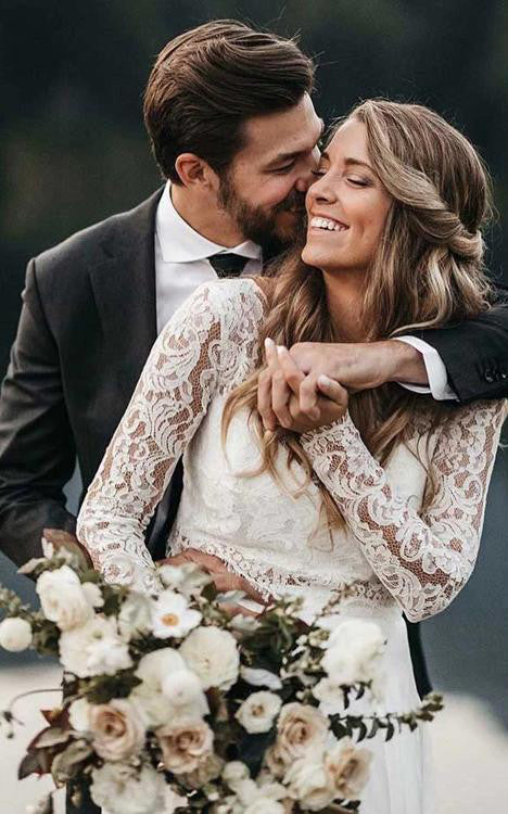 The Country Boho Two Piece Chiffon Lace Bateau Long Sleeve Wedding Dress with Pleats-716013 is far and away, one of our most popular items. People can't seem to get enough of it.