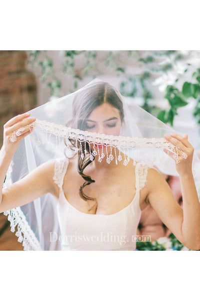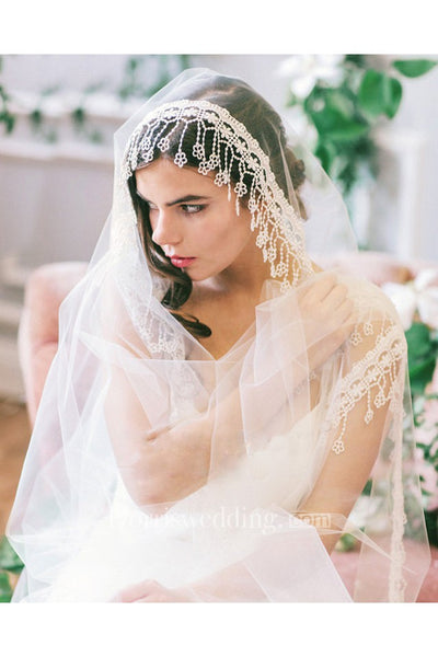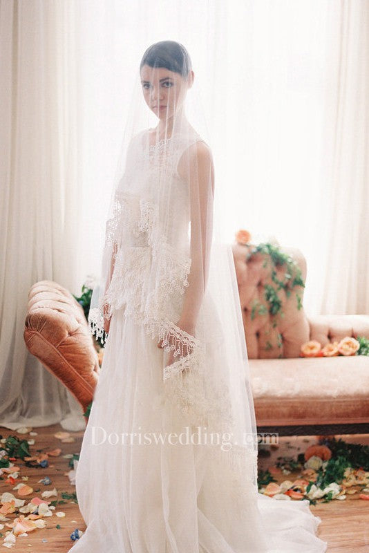 Western Style New Lace Applique Wedding Travel Studio Style Soft Tulle Veil
