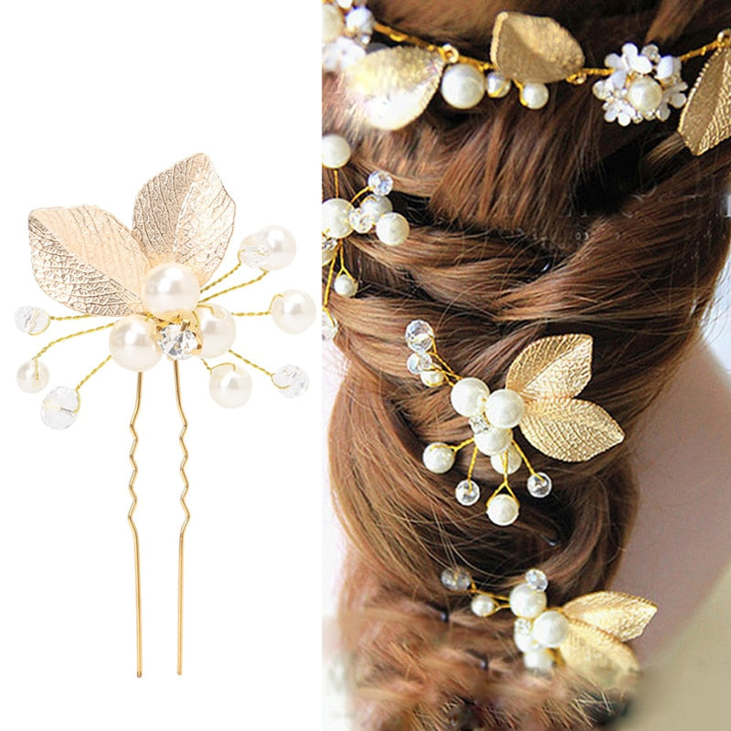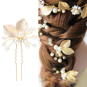 Women's Hair Clip Leaf Rhinestone Faux Pearls Hairpin Bridal Bobby Pin Jewelry